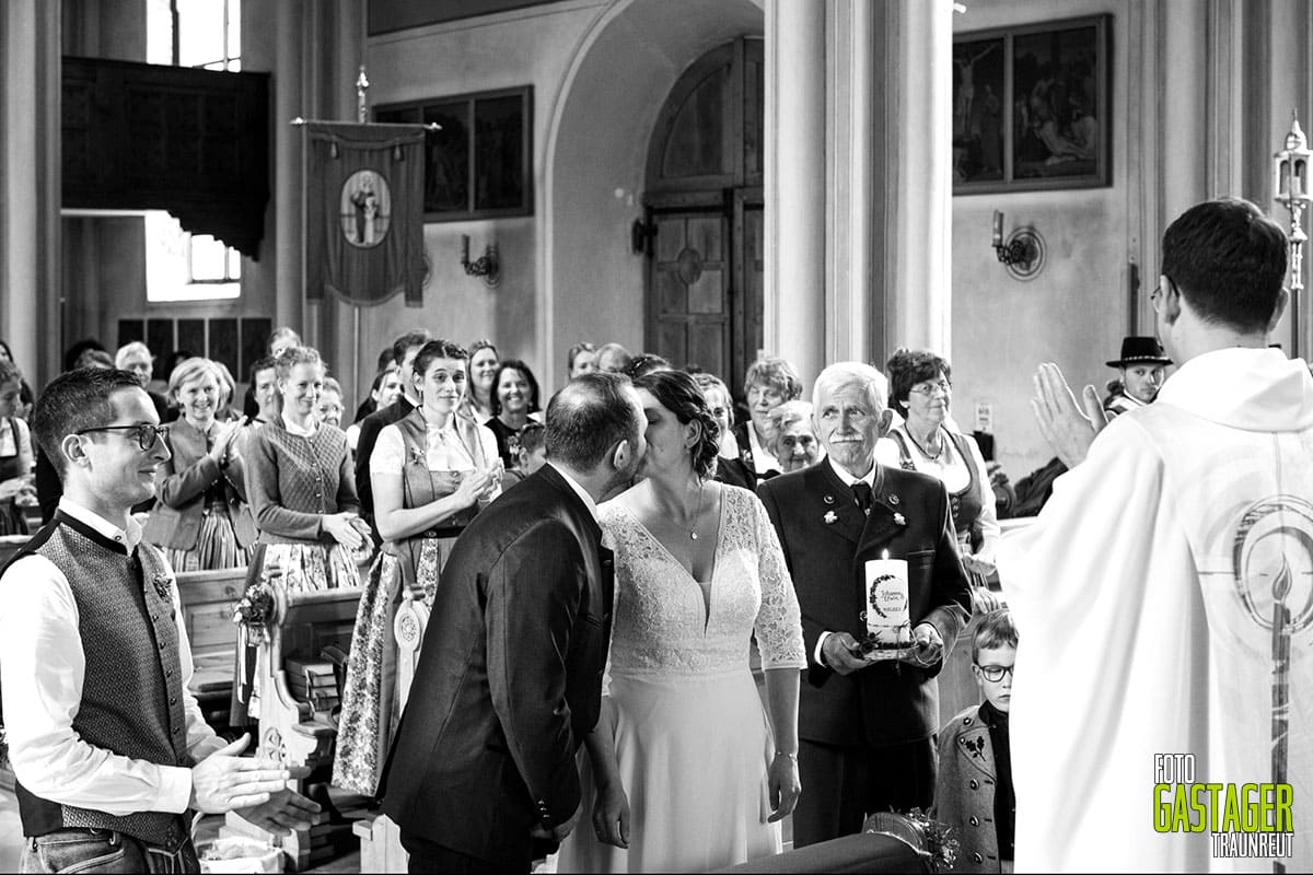 Unser Tag begann mit dem Paar-Shooting in der idyllischen Kulisse von Maria Eck. Die herbstlich gefärbten Bäume, die ruhige Atmosphäre boten eine traumhafte Kulisse für emotionale und gleichzeitig ganz natürliche Aufnahmen. Das Brautpaar war entspannt, verliebt und voller Vorfreude – das sieht man auch auf jedem einzelnen Bild. Anschließend ging es weiter zur feierlichen Trauung in der Kirche in Bergen. Während der Zeremonie durfte ich eine bewegende Reportage fotografieren – von den leisen Momenten des Ankommens, über das gegenseitige Versprechen bis hin zu den Freudentränen des Bräutigams. Es ist immer wieder etwas Besonderes, diese echten Gefühle in Bildern festhalten zu dürfen. Die Hochzeitsfeier fand im Festsaal Bergen statt. Der Hochzeitstanz war einer dieser magischen Augenblicke, in denen der ganze Raum innehält. Und natürlich durfte auch das feierliche Anschneiden der Hochzeitstorte nicht fehlen – ein süßer Höhepunkt, den ich mit der Kamera begleiten durfte.