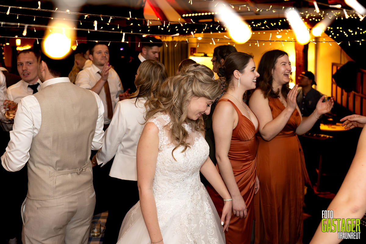 Nach der Trauung ging es ins traditionsreiche Chiemseer Wirtshaus, wo die Hochzeitsgesellschaft mit einem stimmungsvollen Glühweinempfang begrüßt wurde. Dieser winterliche Auftakt setzte den Ton für die ausgelassene Feier in festlich geschmückten Saal. Von herzlichen Reden über mitreißende Tänze bis hin zu fröhlichem Lachen – unsere Hochzeitsfotografie in Chieming hielt jeden Moment fest, sodass das Brautpaar diese Erinnerung für immer bewahren kann.